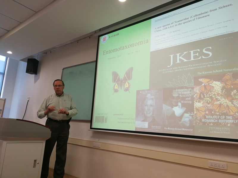 John Richard Schrock教授今年已经72岁,本该颐养天年,但他却不远万里来到中国,为我校植保学院昆虫学科建设尽心尽力。Schrock教授表示明年再来杨凌,与师生一起讨论昆虫学课程内容,为提高《昆虫分类学报》国际化水平继续努力。“我喜欢中国,也喜欢中国文化”,Schrock教授经常这样说。