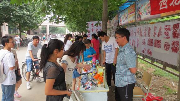 两天以来,在课下饭余时间,不少师生怀着浓厚的兴趣驻足展览板前,仔细欣赏,赞叹不已。一些好学观众在观赏现场还提出了不少问题,手工协会的同学一一解答,并且简单演示了手工艺品的制作方法。