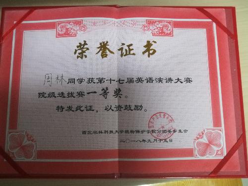 激烈的英语演讲比赛结束,周林和姚念慈同学获得一等奖,并将代表学院参加校级比赛。