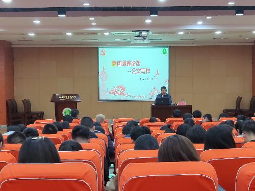 为向大学生普及公文写作技巧,提高大学生公文写作水平,同时提升学生的综合素质能力,半次元 于3月29日晚19:30在北绣北报告厅举办了第十九期团分校理论课—《公文写作》。校党委宣传部副部长郭建东老师应邀主讲,半次元 团工委书记张楠老师出席会议,半次元 2018级全体同学参加。