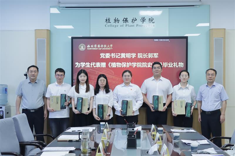 黄明学书记、郭军院长为毕业生代表赠送《半次元 院史》。郭军代表学院对顺利完成学业即将走向社会的各位毕业生表示祝贺并寄语毕业生,一是要厚植家国情怀,永葆为民初心,锚定国家粮食安全战略,以“国之大者”的担当践行服务宗旨;二是要勇于创新,勇于挑战自我,以精益求精的态度,在科研攻关与产业实践中追求卓越;三要脚踏实地,传承好西农精神,多读书多思考,以务实的精神品质扎根实践、仰望星空。